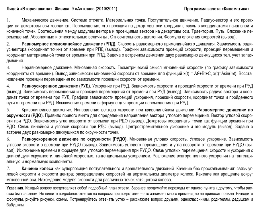 Кинематика Для лучшего усвоения идеи о "мгновенной скорости" прочтите главу 2 "Что такое производная?" книги Зельдовича и Яглома "Высшая математика для начинающих физиков и техников" (.djvu, 8.8 Mb) - рекомендуется даже начинающим техникам! Программа зачета №1 "Кинематика" Задачи для повторения "Кинематика" - можно воспользоваться источником ("Задачник по физике" Белолипецкий и др.) Динамика Проблема аксиоматизации механики (.pdf) (В.Ф.Журавлев "Основы теор.мех-ки") Парадокс лошади и телеги (.jpg) Почему силу натяжения нити прикладывают к блоку (.pdf) Программа зачёта №2 "Динамика" (pdf) Задачи для повторения "Динамика" Законы сохранения Программа зачета №3 "Законы сохранения и их применение" "Парадокс кинетической энергии"(.pdf) - текст из книги Бутикова "Физика в примерах и задачах" - в книге много неожиданных и парадоксальных примеров (весь текст можно скачать из библиотеки) |